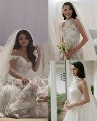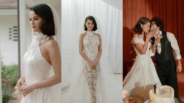Selena Gomez optó por lucir no uno, sino tres vestidos de novia diferentes, todos ellos diseños personalizados de Ralph Lauren: